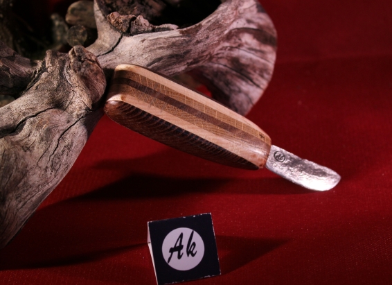 Der Griff wurde aus Nussbaum, Kirsche, Ahorn und Eschenholz hergestellt.