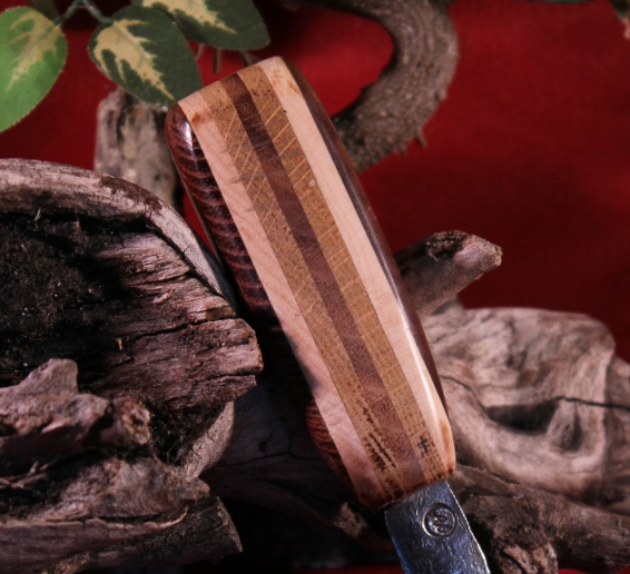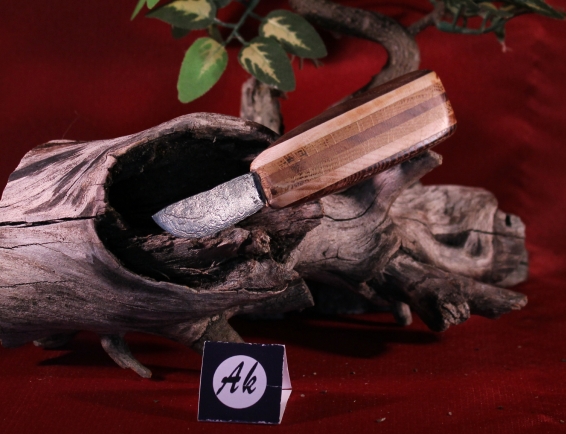 Durch die Mittelschicht aus weißem Papierstahl lässt sich die Klinge sehr gut schärfen und scharf halten. Die 22 Lagen Suminagashi geben der Klinge eine Individuelle Struktur und geben dem Messer eine sehr gute Stabilität.
