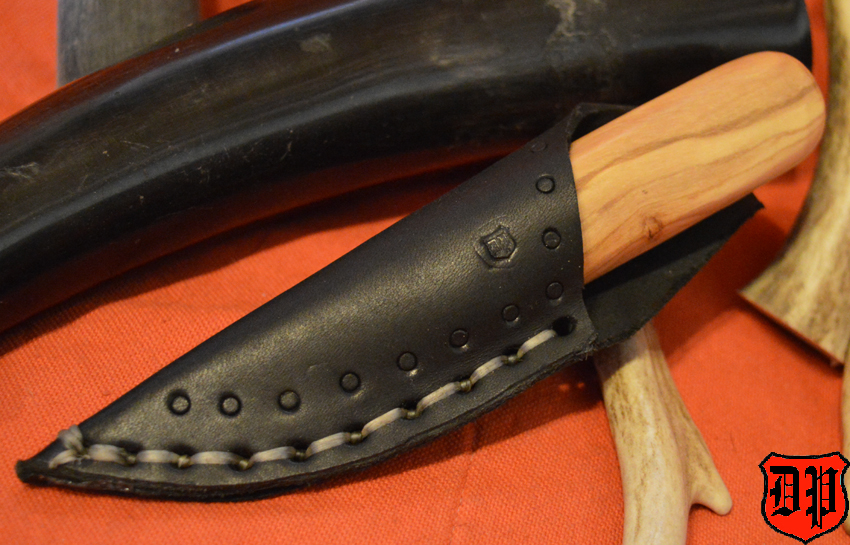 Die mitgelieferte und ebenfalls in Handarbeit gefertigte Messerscheide besteht aus ca. 2 mm dickem Italienischem Bullenleder.