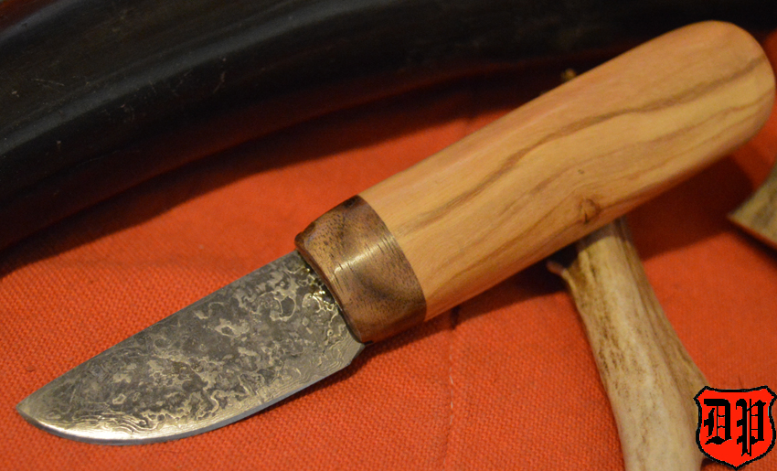 Der Griff wurde ebenfalls in Handarbeit hergestellt und besteht aus Olivenholz und Garappa.