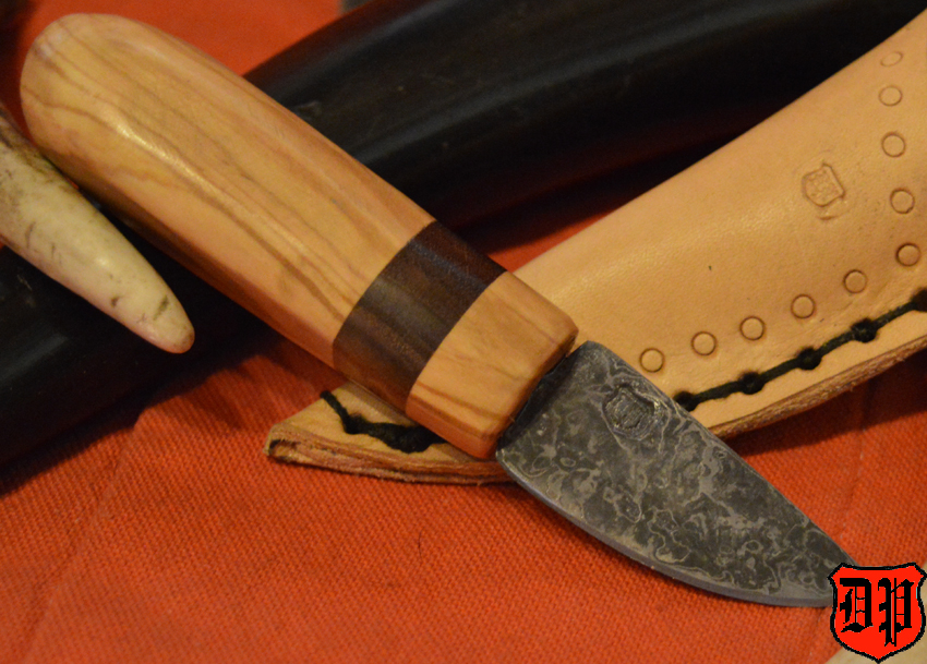 Der Griff wurde ebenfalls in Handarbeit hergestellt und besteht aus Olivenholz und Garapa.