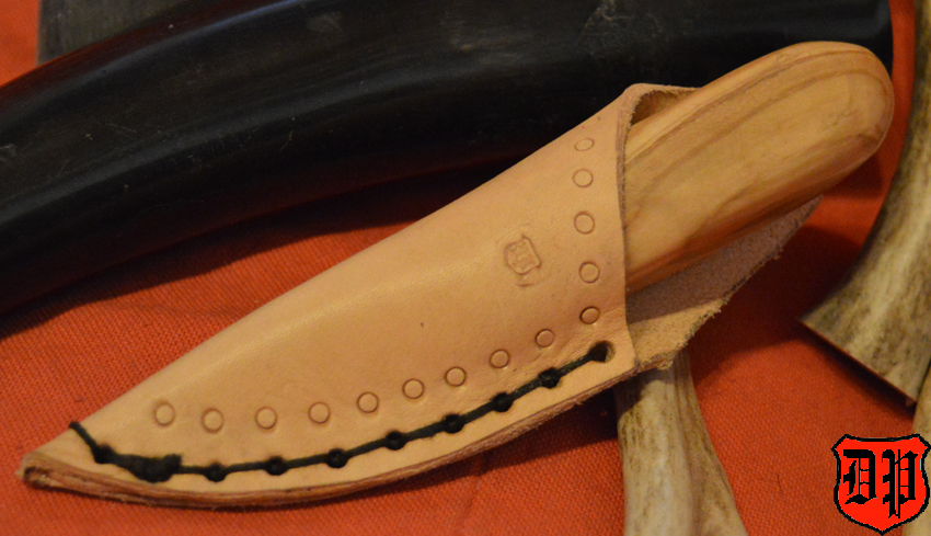 Die mitgelieferte und ebenfalls in Handarbeit gefertigte Messerscheide besteht aus ca. 2 mm dickem Italienischem Bullenleder.