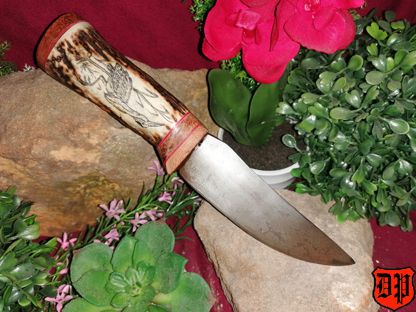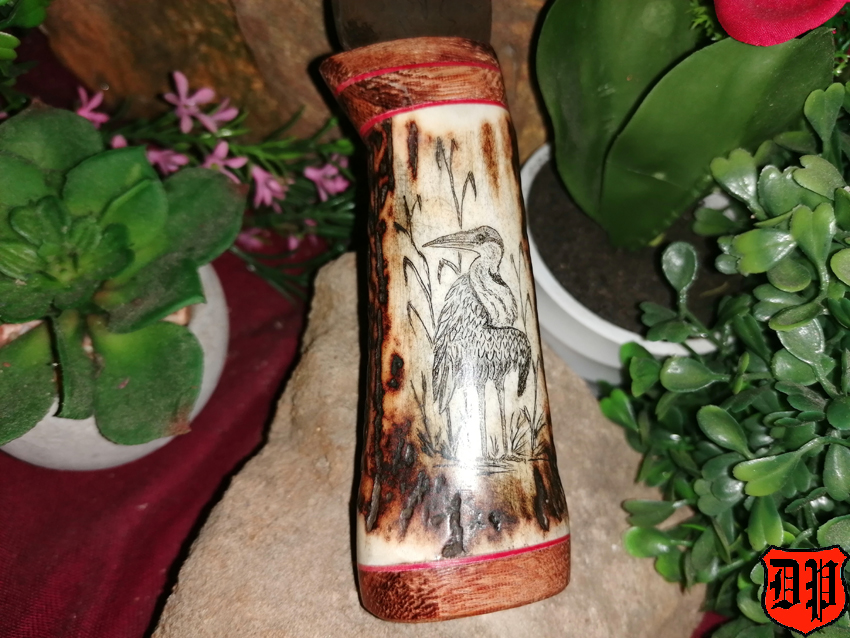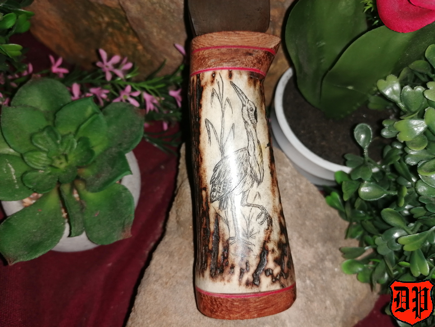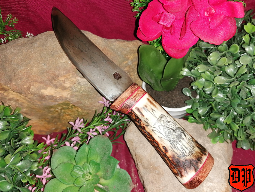 Handgeschmiedetes Damastmesser mit Scrimshaw