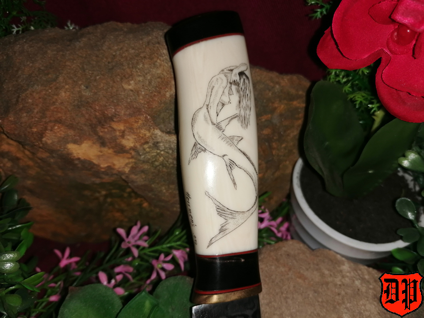 Handgeschmiedetes Damastmesser mit Scrimshaw