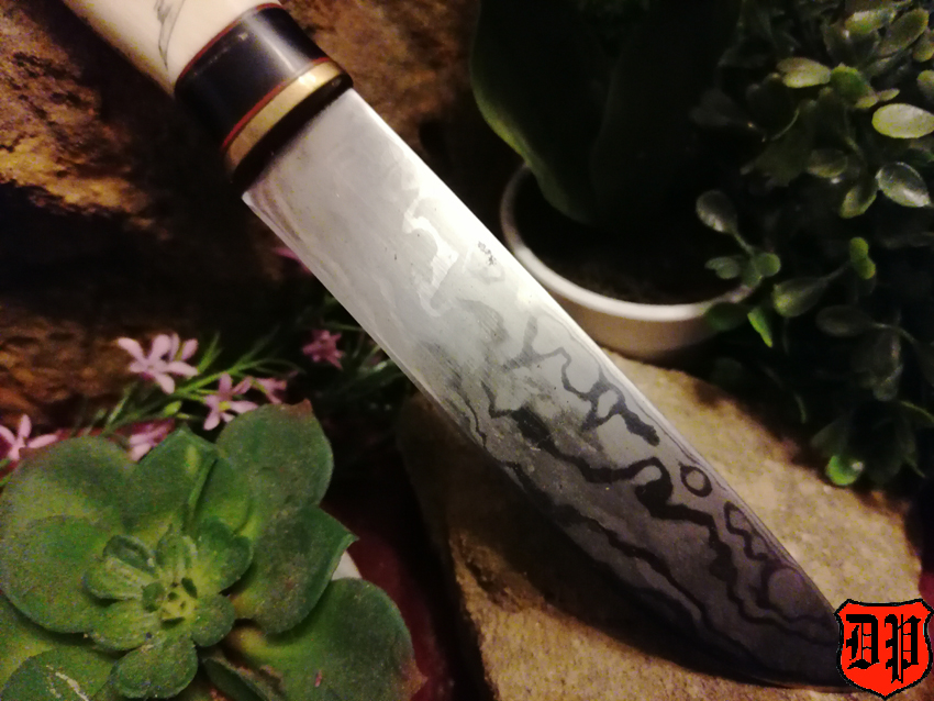 Die Einzigartige und Individuelle Struktur des Stahles die durch das zusammenschmieden entsteht wurde zusätzlich durch ein Säurebad anschließend noch verdeutlicht.