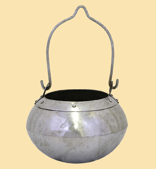 Sehr hochwertiger, vernieteter und massiver Stahltopf.