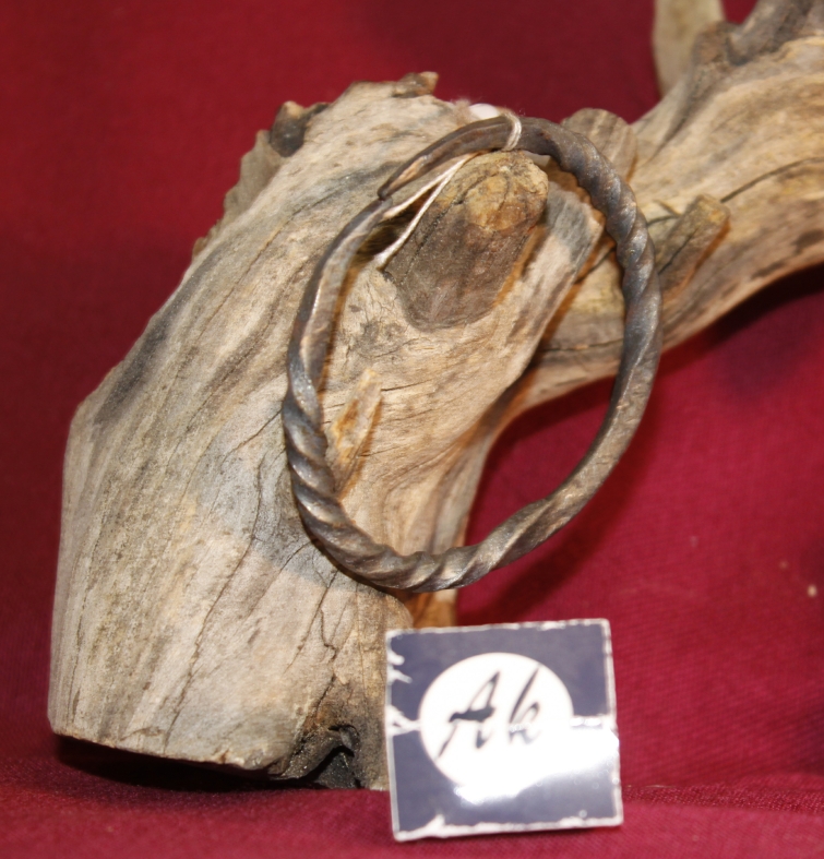 Da der Armreif frei per Hand aus dem Material geschlagen wurde und nicht wie meist aus einem Gesenk, handelt sich bei dem Produkt um ein absolutes Unikat.