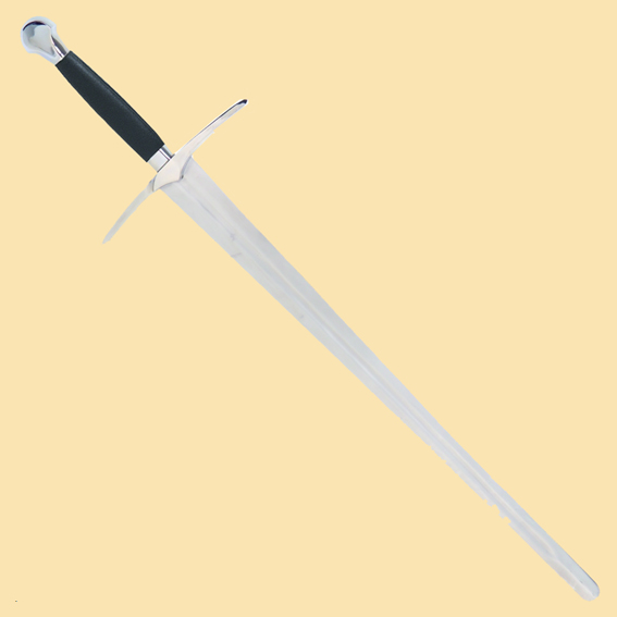 Die Griffteile sind aus Stahl, der Griff ist mit Leder umwickelt.