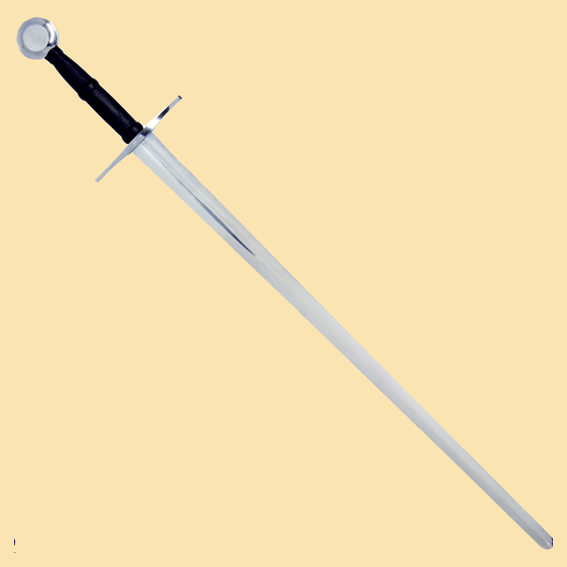 Die Griffteile sind aus Stahl, der Griff ist mit Leder umwickelt.