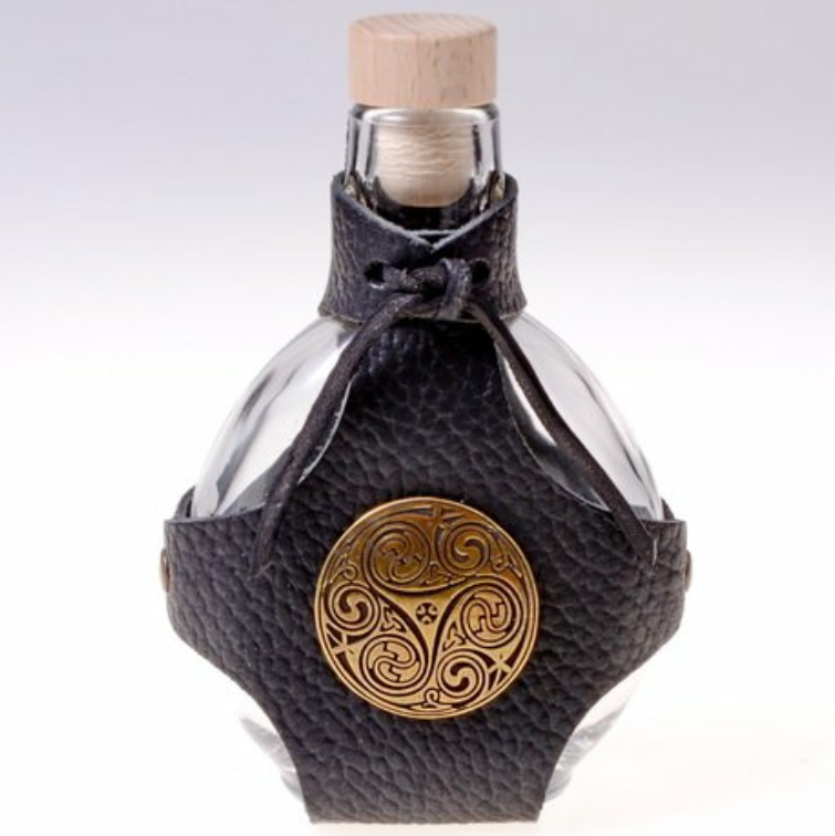 Die Flasche wird komplett mit Lederhalterung geliefert.