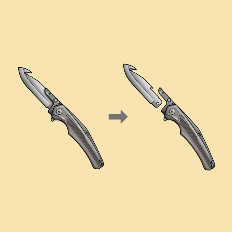 Die Klingen und das Griffstück werden sicher