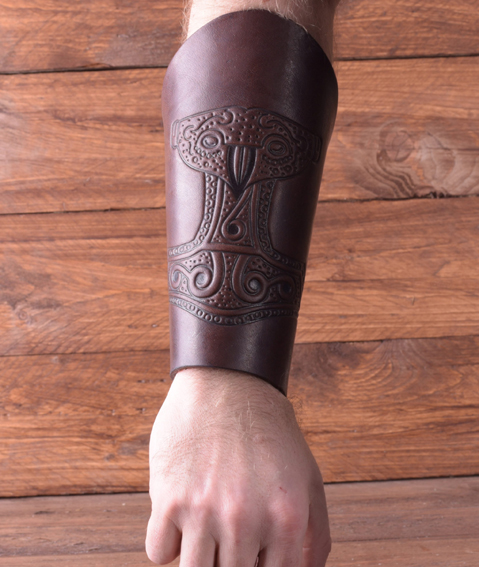 Armstulpe mit geprägtem Thorshammer, braun-antik