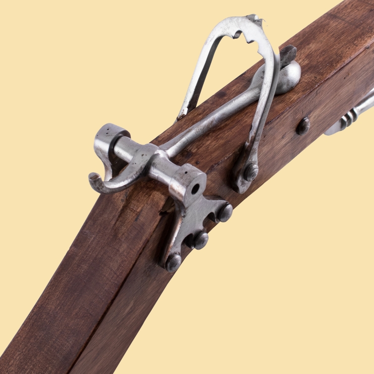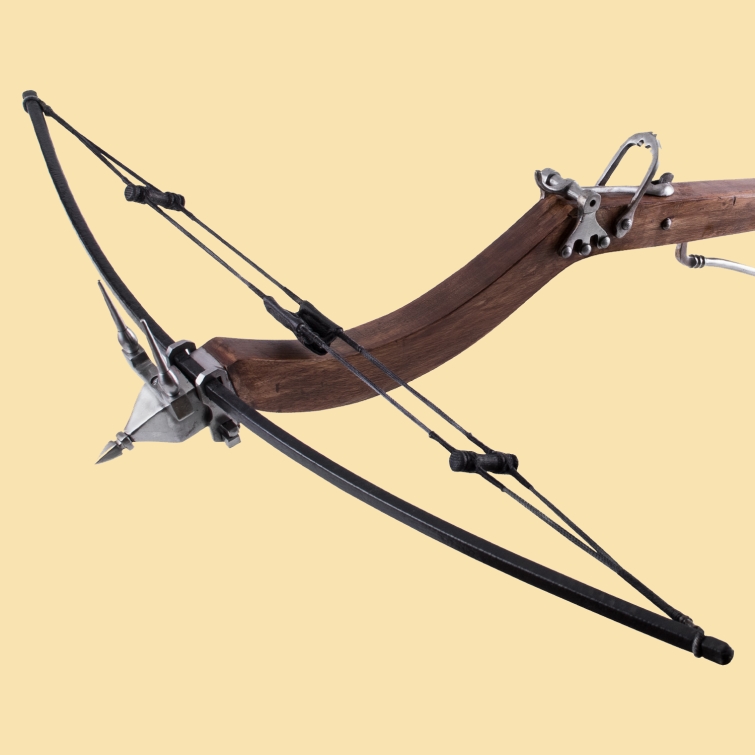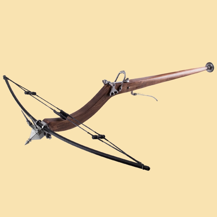 Spätmittelalterlicher Kugelschnepper, Balester-Armbrust aus Holz und Stahl