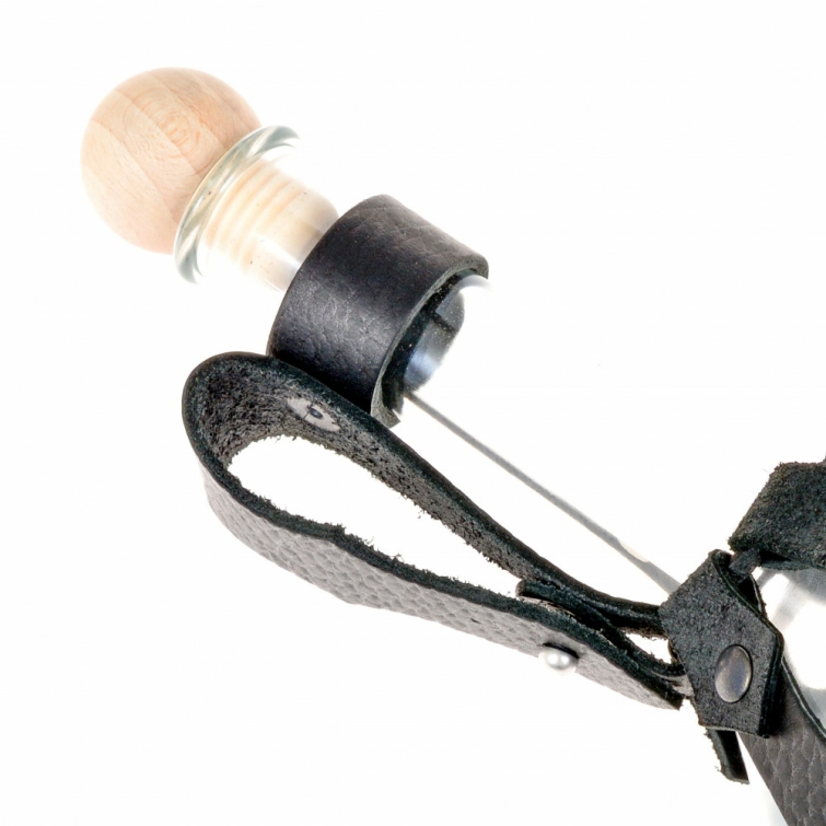 Die Glas-Feldlasche ist mit einem praktischen Leder-Halter