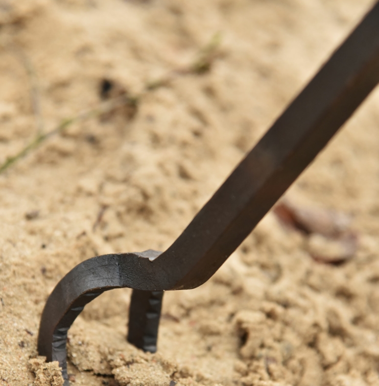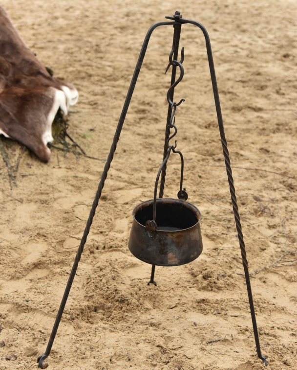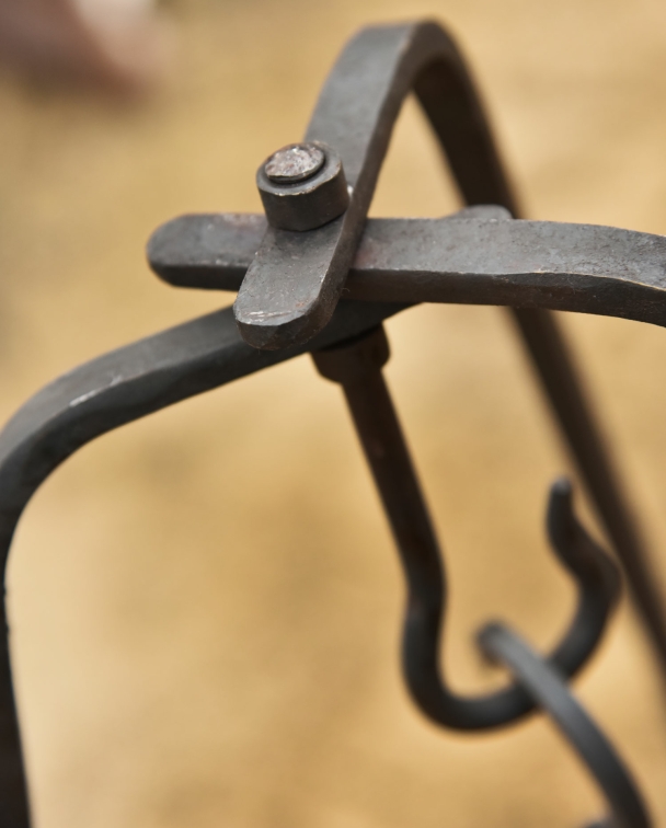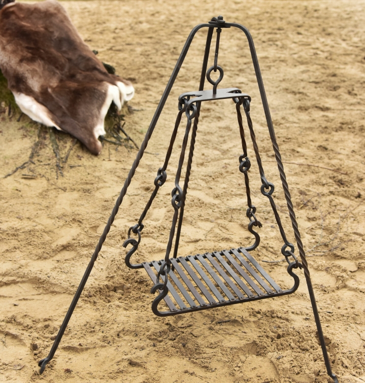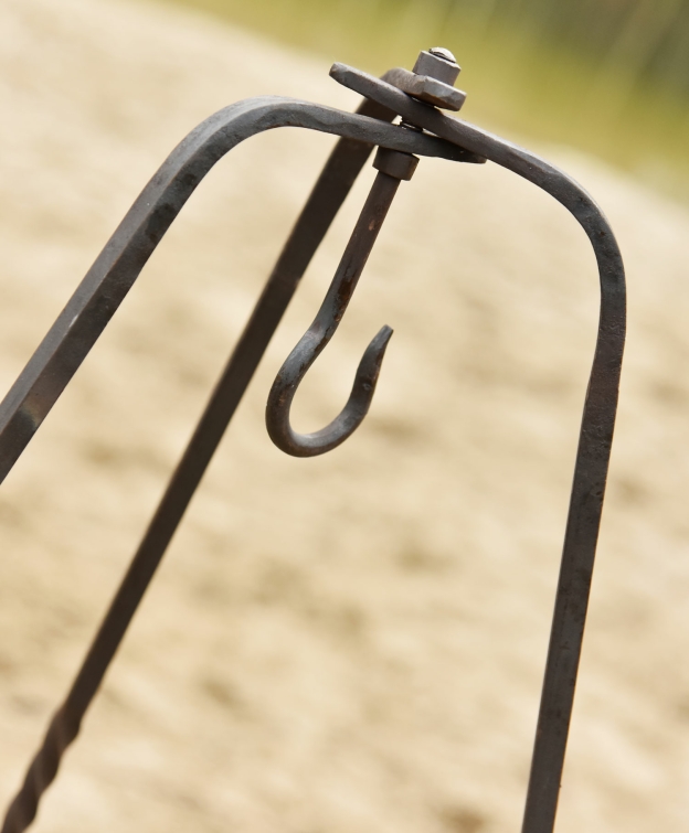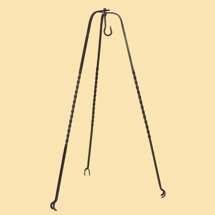 Sehr massives und handgeschmiedetes Dreibein aus Stahl.