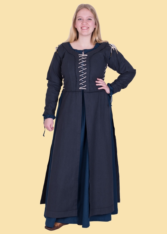 Mittelalterliches Kleid mit Schnürungen, dunkelblau