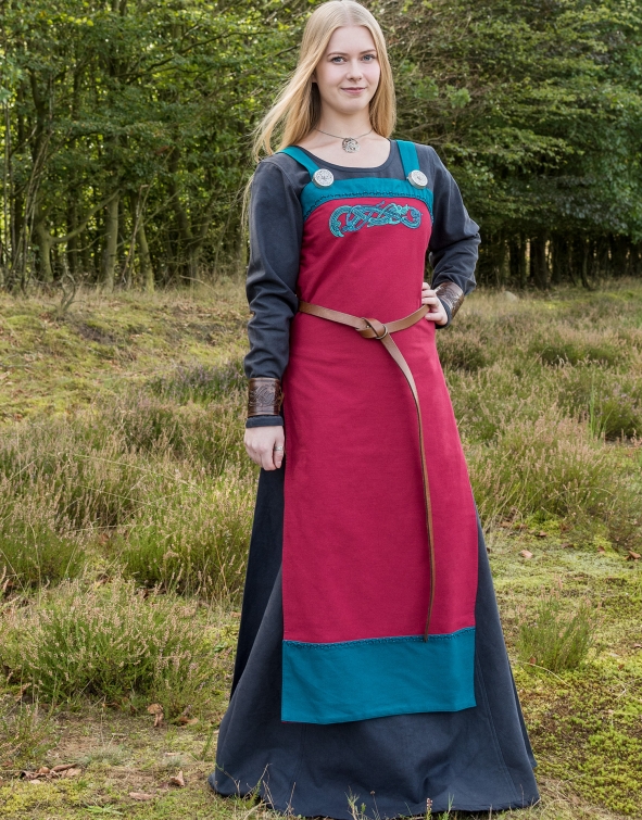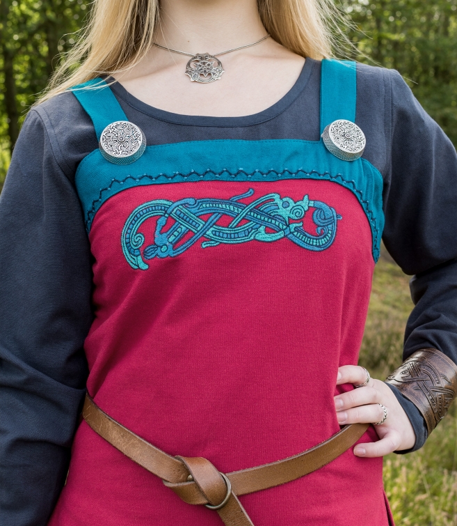 Wikinger Trägerkleid - Schürzenkleid Hilja mit Stickerei, rot