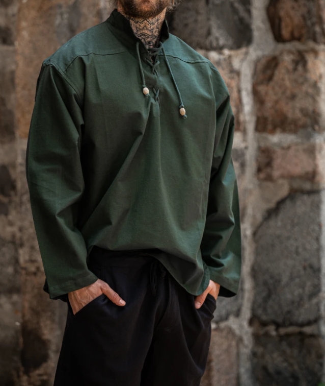 Das Hemd ist großzügig geschnitten, sodass es volle Bewegungsfreiheit bietet.
