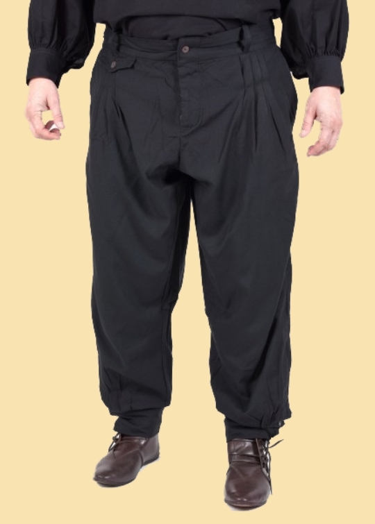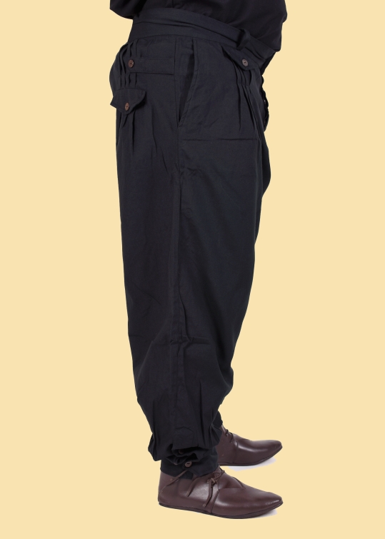 Eine locker geschnittene und sitzende Stoffhose mit Faltenlegung an den Taschen,