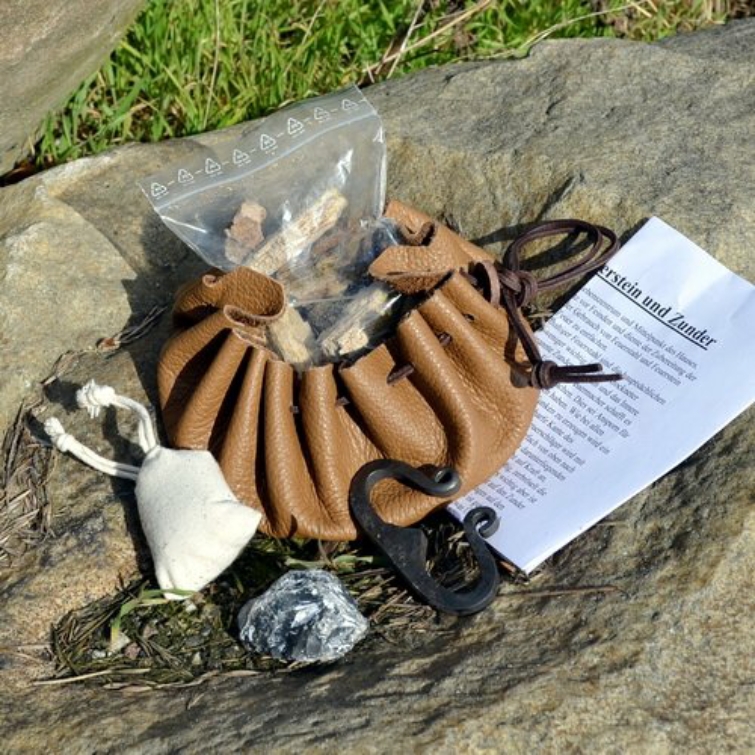 Mittelalterliches Feuerzeug im stabilen Lederbeutel.