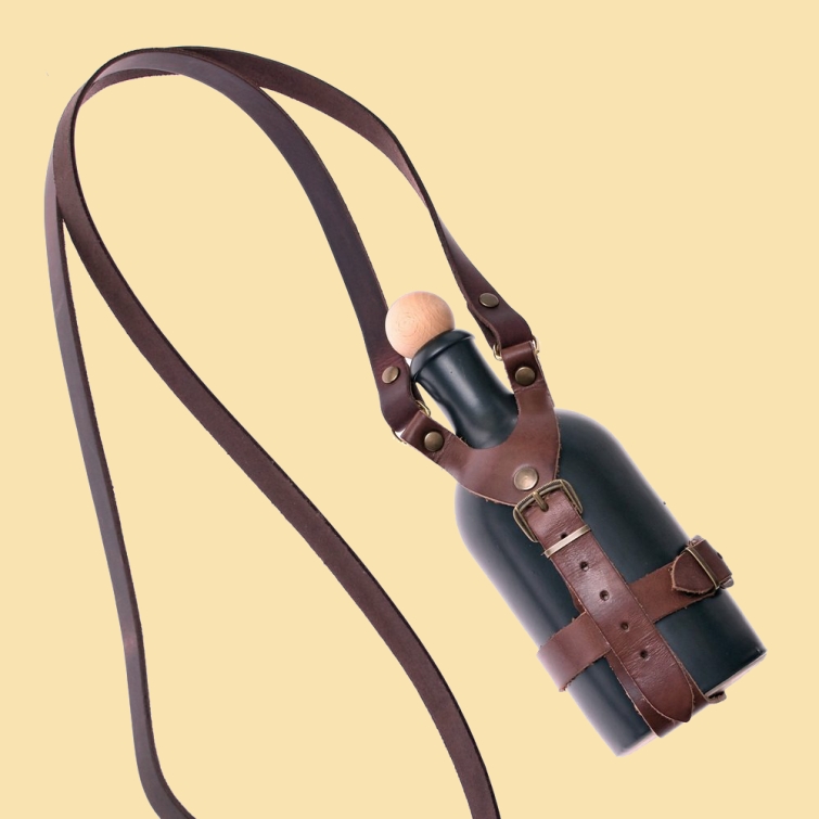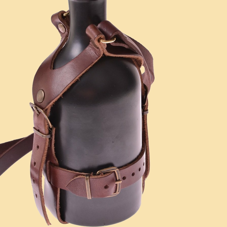 Steinzeug-Flasche mit Schulter-Halfter - braun