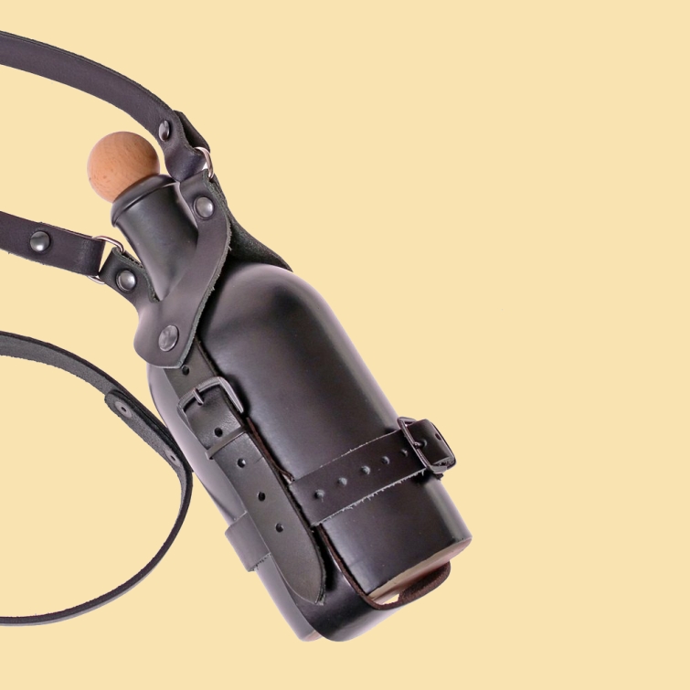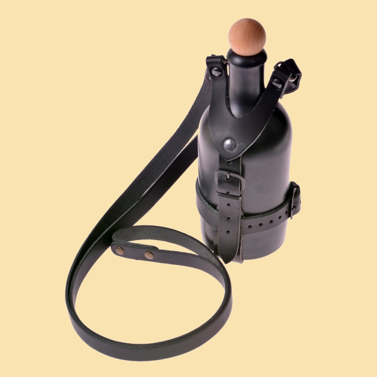 Steinzeug-Flasche mit Schulter-Halfter - schwarz