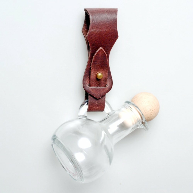 Kleine Glas-Karaffe für 0,1 Liter mit Gürtel-Halter.
