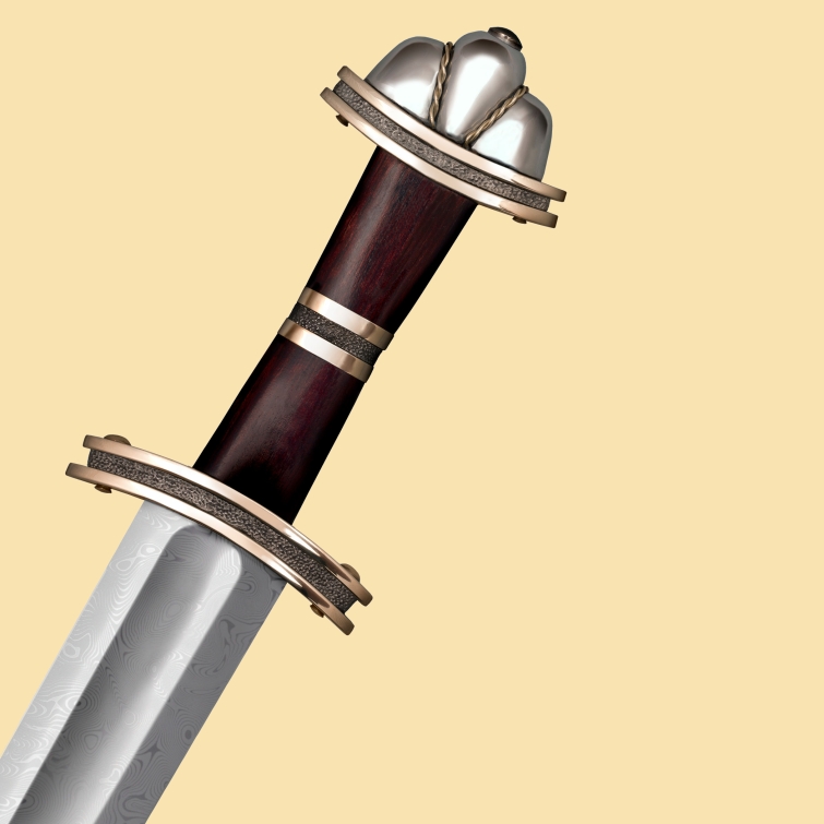 Parier und Knauf sind im typischen Wikingerstil gestaltet und wurden auf Hochglanz poliert.