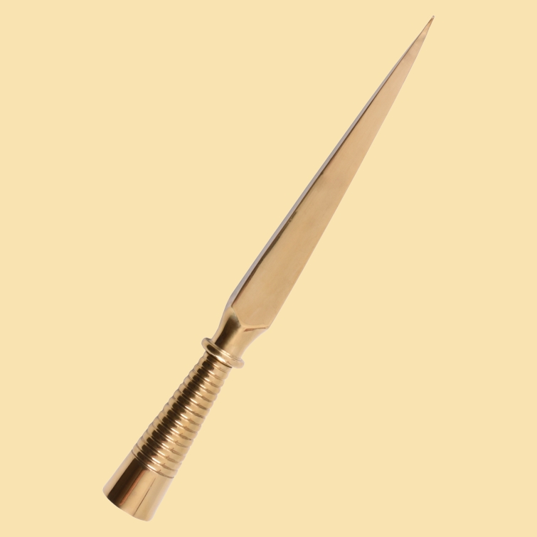 und einem kräftigen, spitzen Speerfuß aus Bronze,