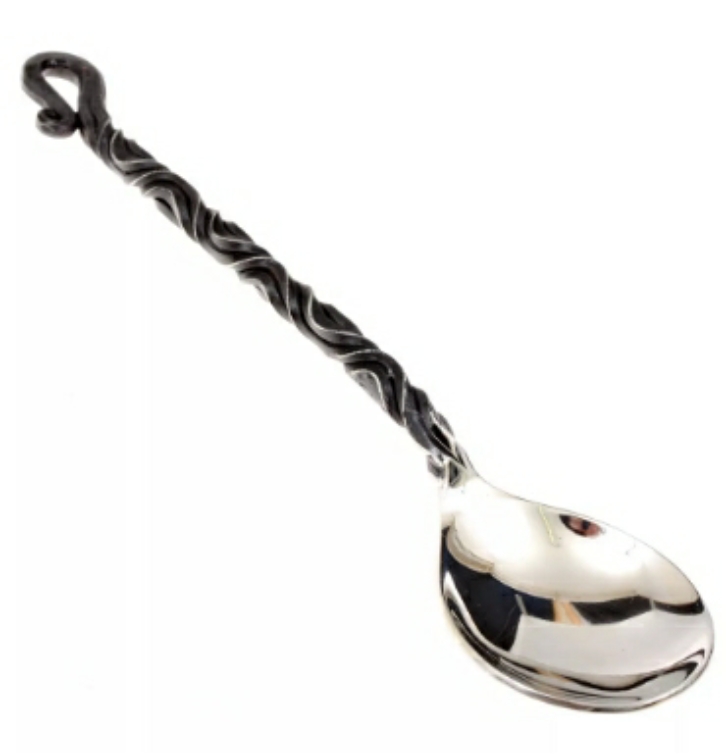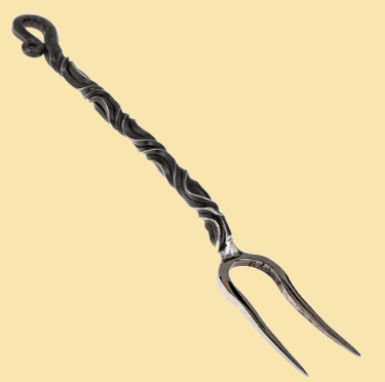 Das Besteck ist an den Griffenden zu einer Öse ausgeschmiedet,