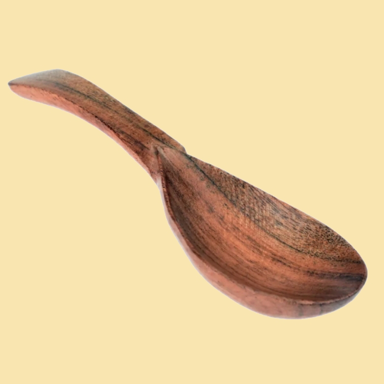 Der Holzlöffel wurde in traditioneller Handwerkskunst von Hand aus Mangoholz geschnitzt