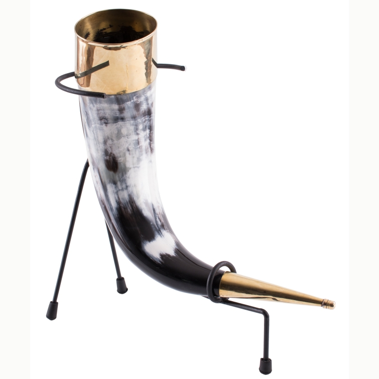 Wikinger Trinkhorn mit Messingbeschlägen und Ständer -