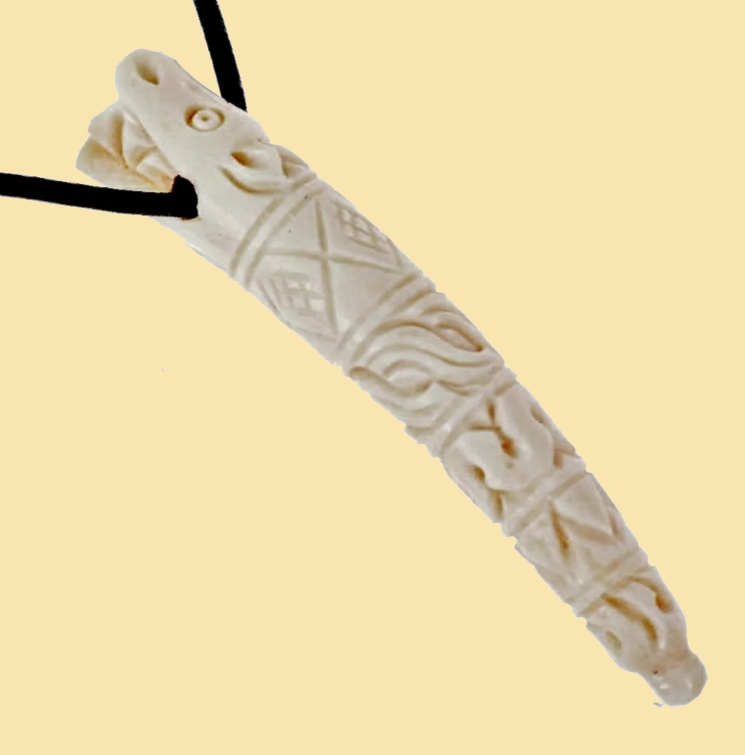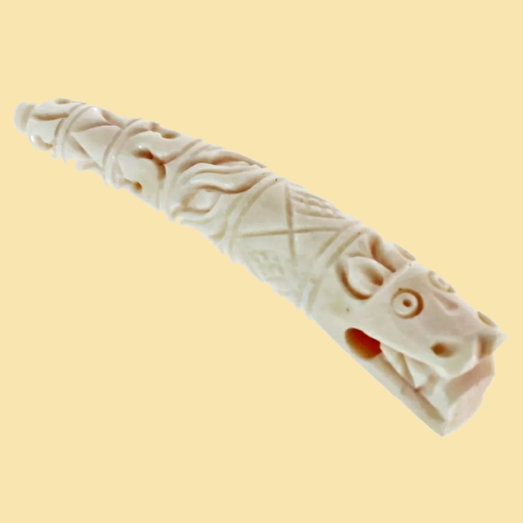 und ist mit einem geschnitzten Drachenkopf verziert.