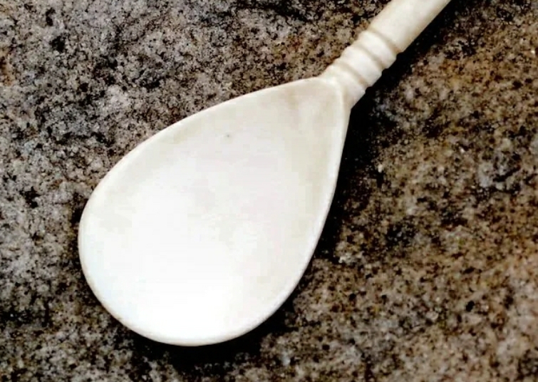 Der Löfffel ist aus echtem Knochen von Hand geschnitzt