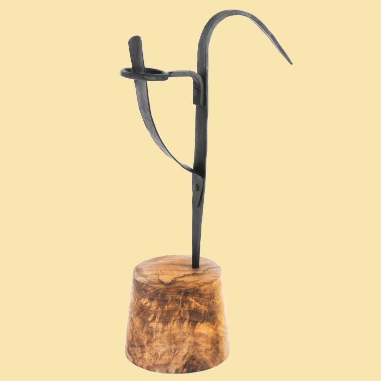 Schmiedeeiserner Tisch-Kerzenhalter für Stabkerzen.