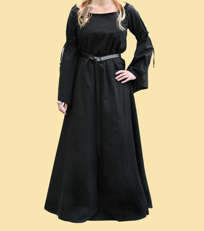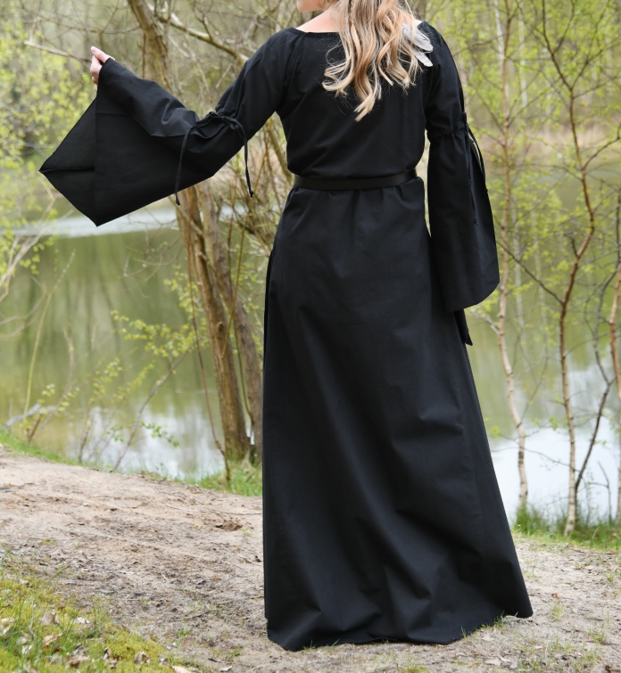 Mittelalterliches Unterkleid Burglinde mit Trompetenärmeln, schwarz
