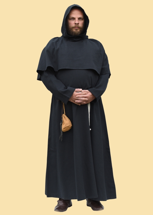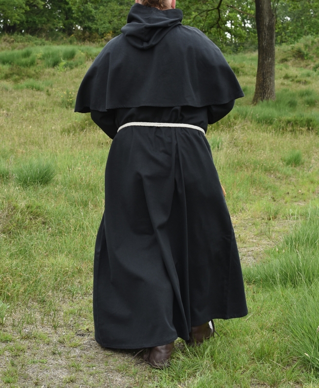 Mönchskutte Benedikt - mit Kapuze und Seil, schwarz