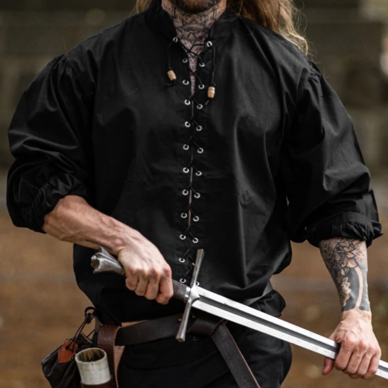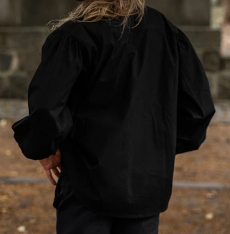 Kordelschnur mit Holzknöpfen am Dekolleté