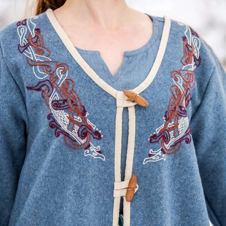 Die aufwendige Handstickerei im Urnes-Stil ziert den Halsbereich
