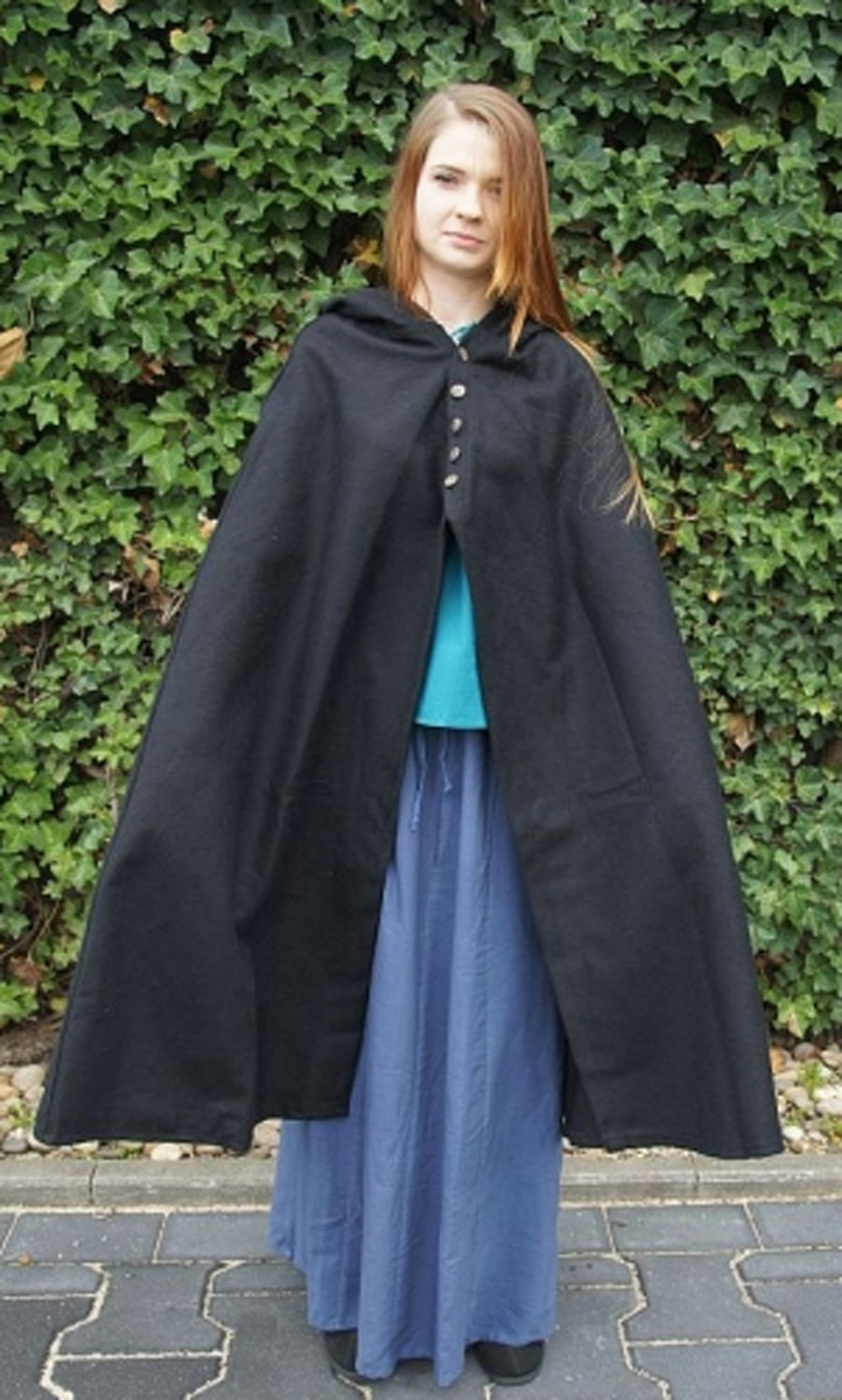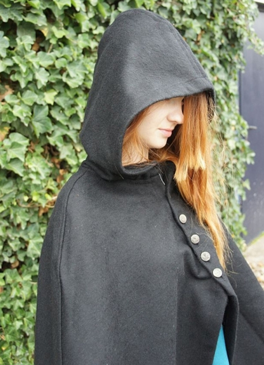 Schöner Damenumhang mit fünf Metallknöpfen an der Vorderseite