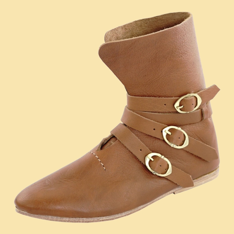 Spätmittelalter Halbstiefel mit drei Schnallen.