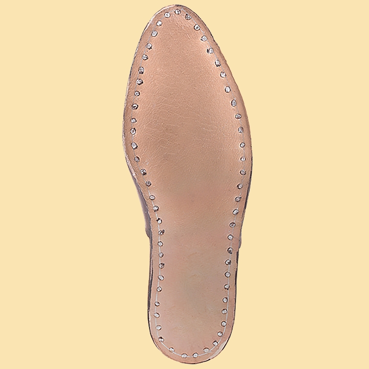 Die Sohle ist mehrschichtig aufgebaut und besteht ca. 8 mm dickem Rindsleder.