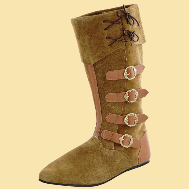 Mittelalterliche Stiefel aus Rauhleder mit vier Schnallen und Schnürung