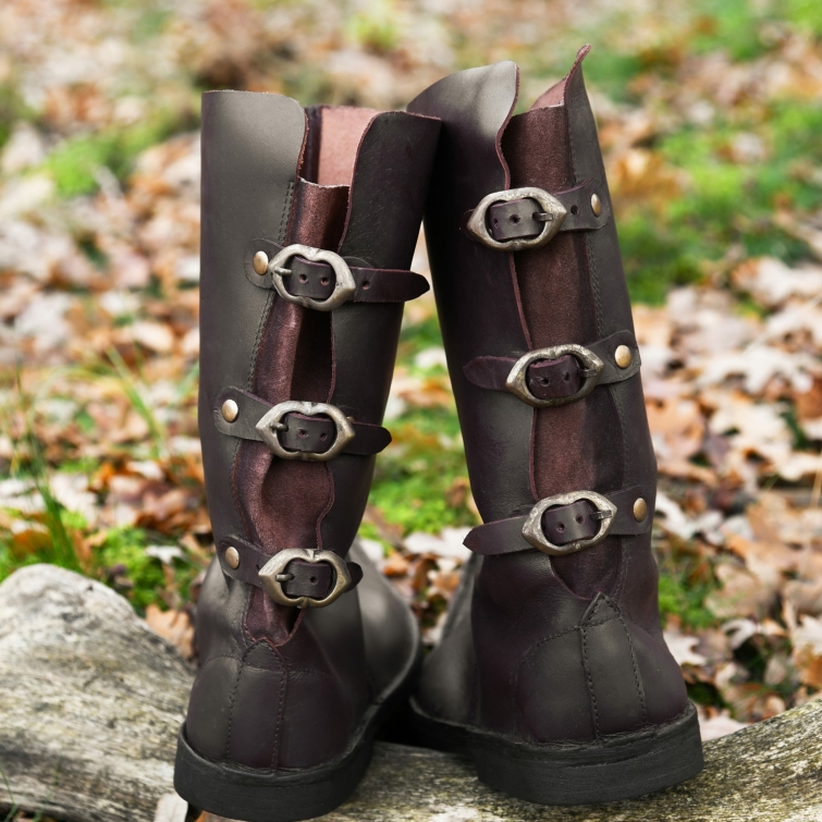 Die Stiefel werden mittels dreier Schnallen und angenieteter Riemen