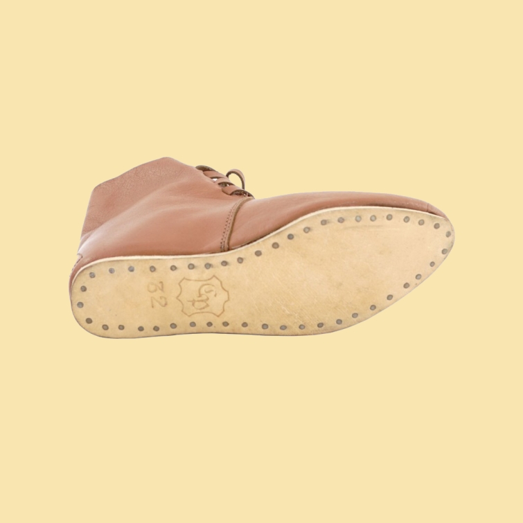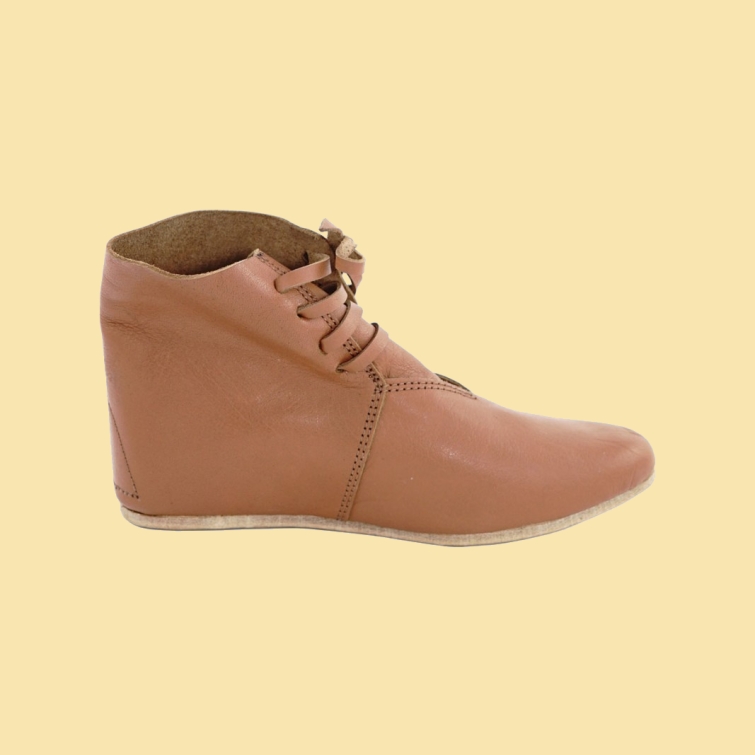 Schuhe dieser Art sind in den Mittelalter Funden oft anzutreffen.