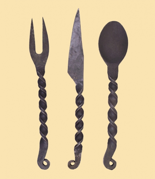 3-teilig, bestehend aus Messer, Gabel und Löffel.