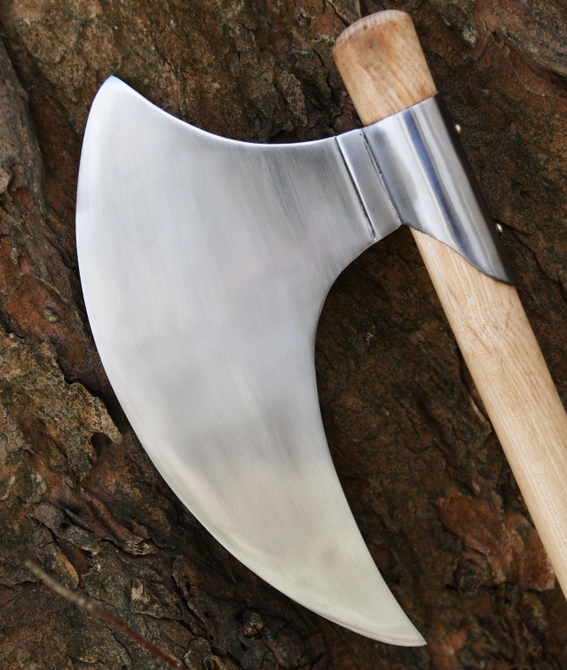 Dekorative Bartaxt mit Schaft aus Eschenholz und Axtblatt aus Stahl.