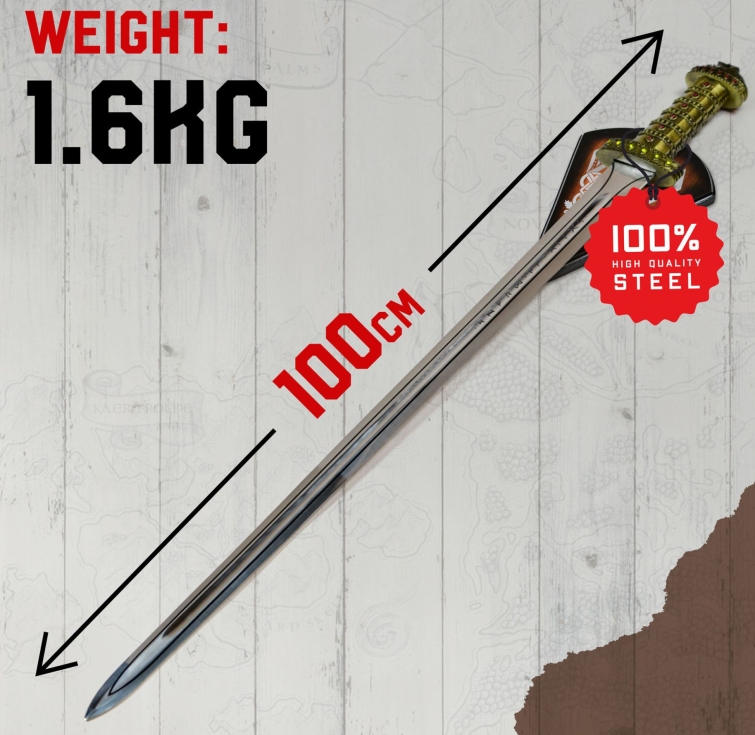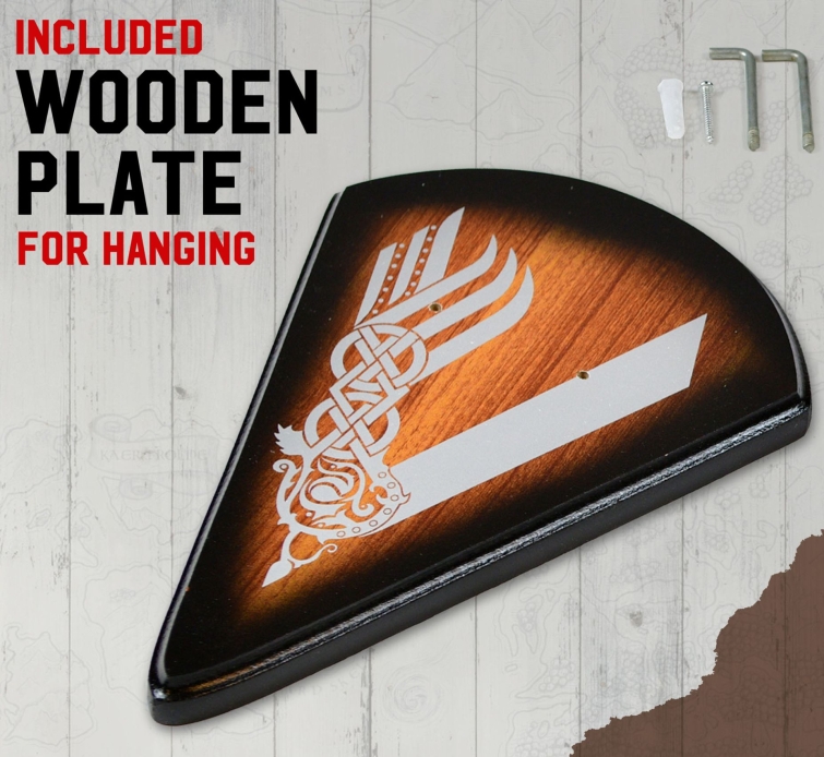 Dieses dekorative Schwert wird mit einer Holzplatte zum Aufhängen geliefert.