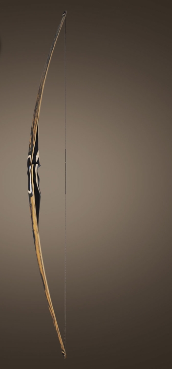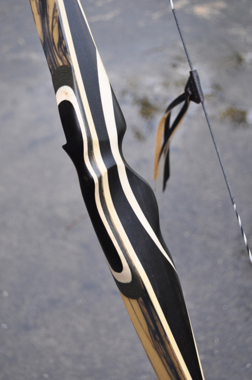 Das Mittelteil des majestätischen Langbogens besteht aus schwarzem Ebenholz,
