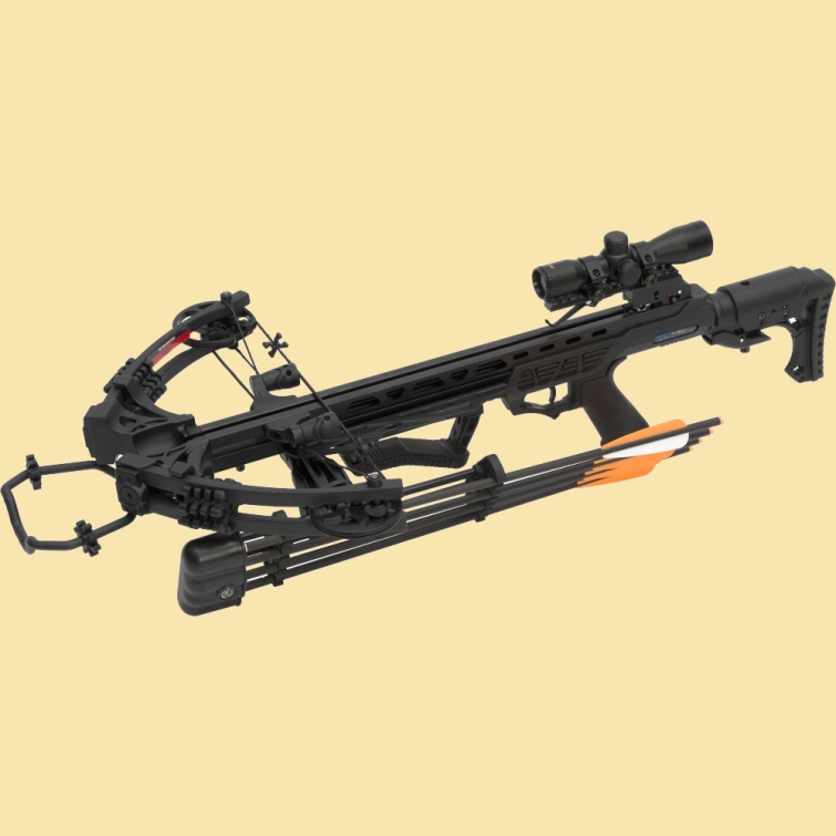 Mit Hochleistungs Wurfarmen aus Fiberglas und ausziehbarer Schulterstütze.